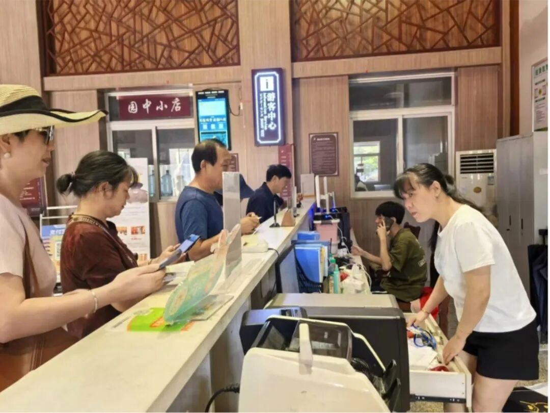 面對禪都博覽園“大秦兵馬俑文化藝術(shù)展”帶來的客流高峰,五葉文旅黨員突擊隊迅速響應(yīng),提前備齊防暑物資,全員下沉一線,以“時時放心不下”的責(zé)任感,踐行“國慶我在崗,服務(wù)不打烊”的承諾。在售票處細致解答票價政策與優(yōu)惠問題,高效協(xié)助購票;于閘機口微笑服務(wù),疏導(dǎo)人流,確??焖偃雸@;主動接過行囊,小心攙扶老人、協(xié)助親子家庭,讓服務(wù)既有“速度”更有“溫度”。