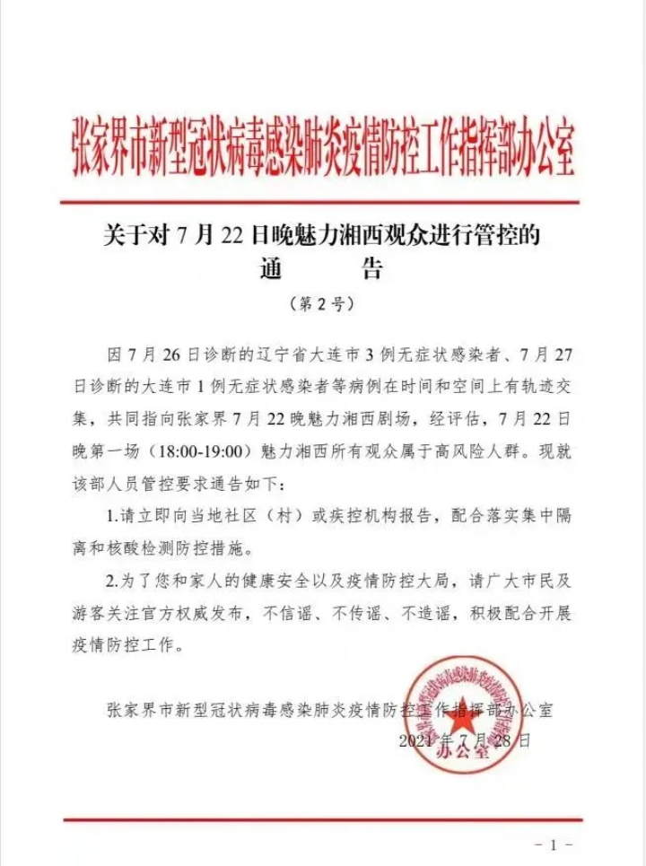 二、2021年7月17—27日有湖南張家界市旅居史的來宜返宜人員,尤其是22日參加過湖南省張家界風(fēng)景區(qū)當(dāng)日18:00—19:00“魅力湘西”大型演出的所有觀眾屬于高風(fēng)險人群,須第一時間主動向所在社區(qū)(村組)、單位報告,并接受社區(qū)(村組)管理,開展不少于2次的核酸檢測,并自離開之日起,按照“填平補齊”的原則實施14天集中隔離,集中隔離期間隔日開展1次核酸檢測。